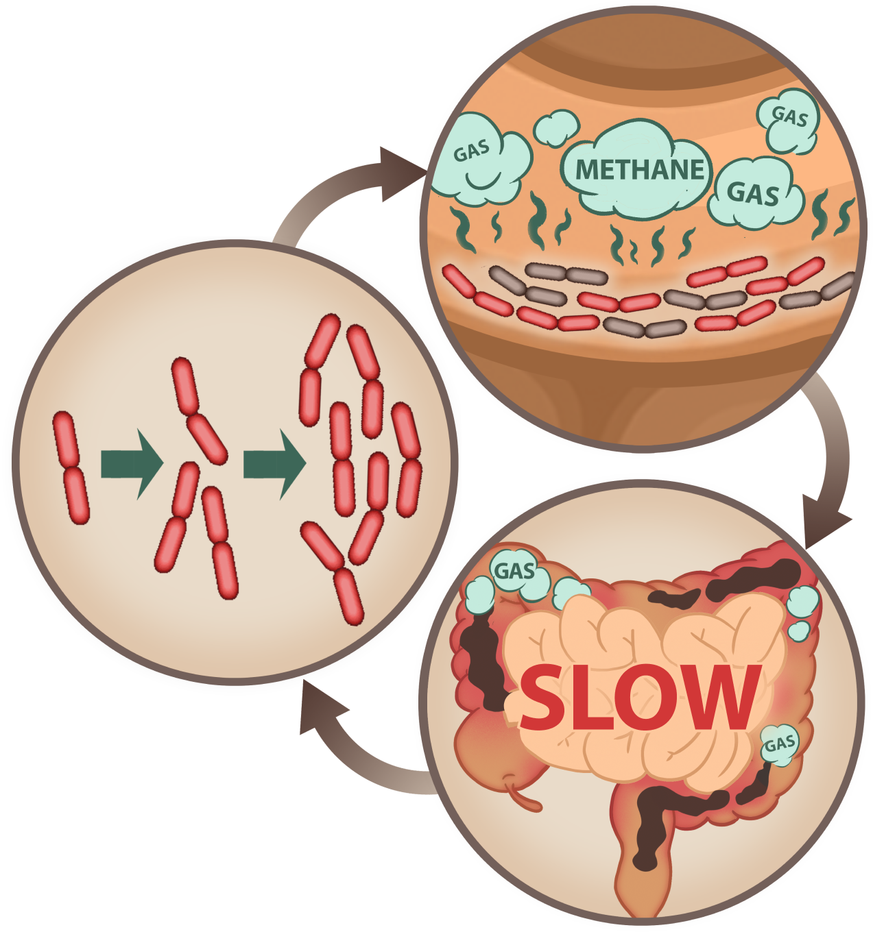 Methane gas slows down peristalsis which is the scientific term for thetime your poop travels through your digestive tract.
